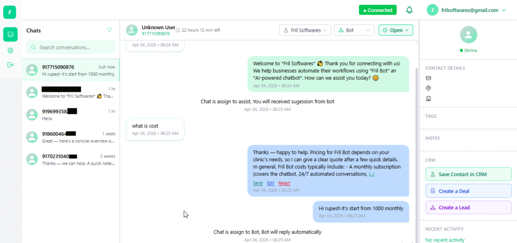 Empower your business with intelligent AI chatbots, WhatsApp automation, CRM integrations,
